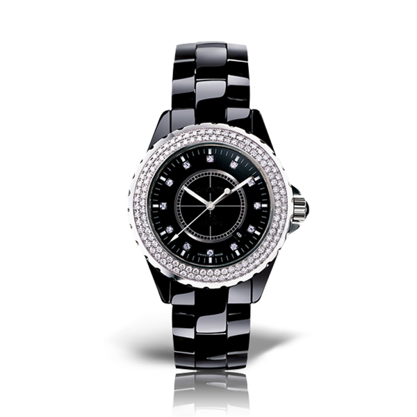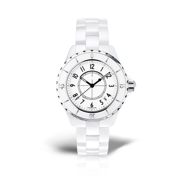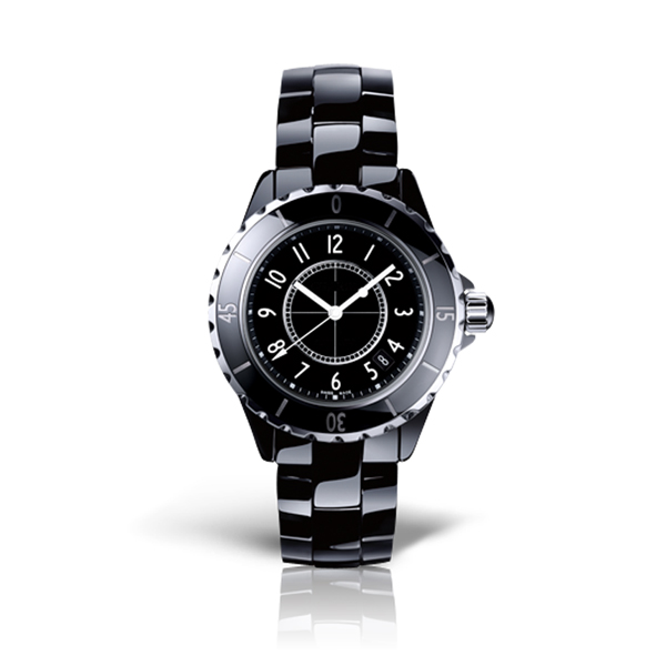商品材質:石英機芯、抗磨損藍寶石水晶鏡面、精密陶瓷錶殼及錶帶